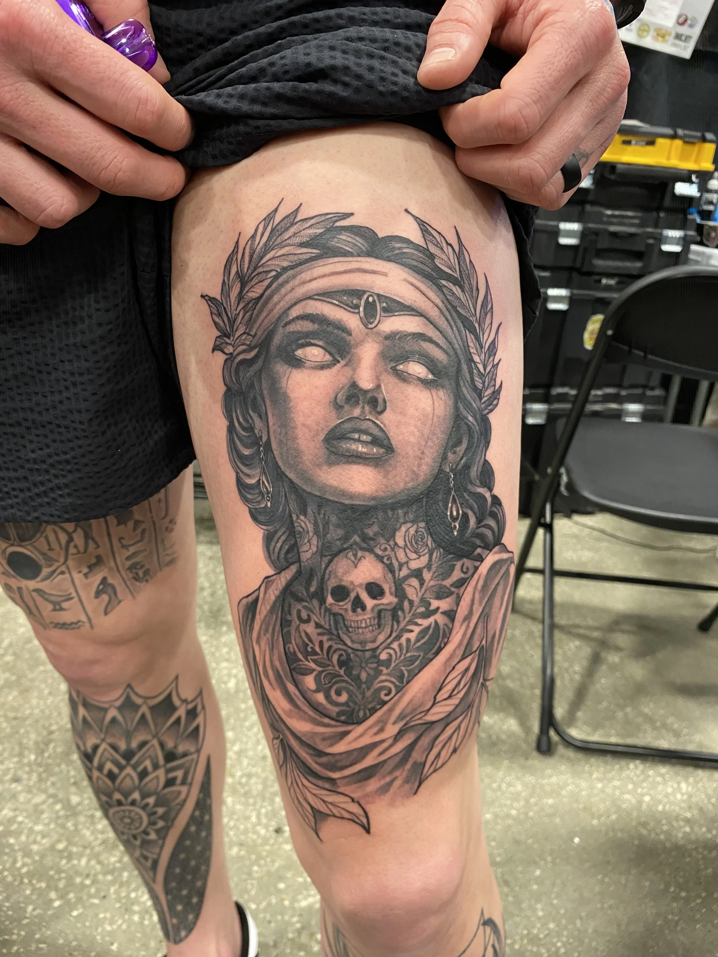 Tony brings an edge of versatility to the team, with a specialty in coverups and bright colors. His work has been recognized at several tattoo expos for Coverups and large color categories.